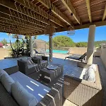 De 3-slaapkamer Villa Ghjulia Porto-Vecchio ligt op circa 10 minuten rijden van Plage De Porto-Novo en nodigt gasten uit om te ontspannen op een terras.